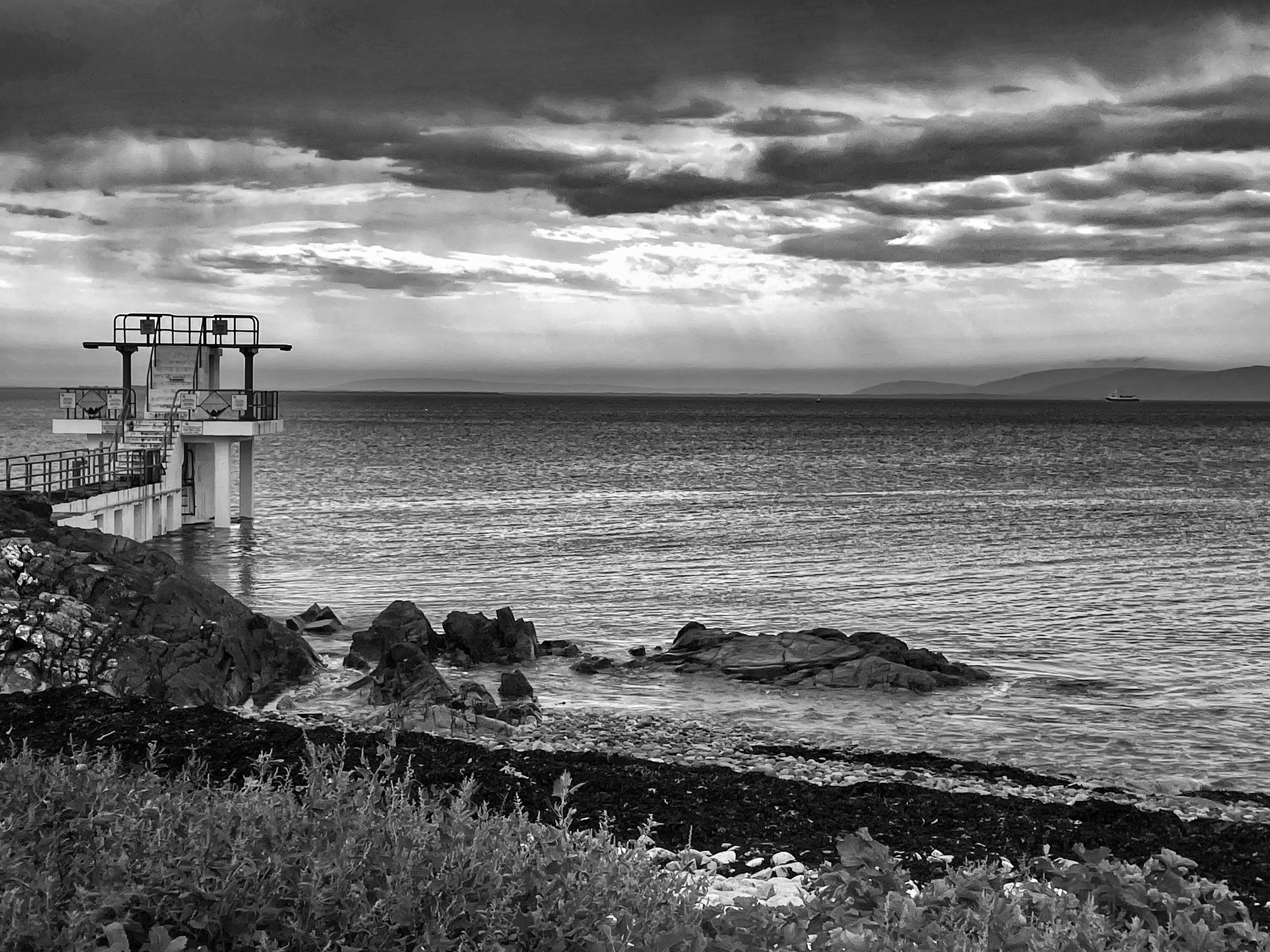 Ma and Nancy sit on the flat granite flagstones along the canal bank, their feet dangling over the edge, the humid night air folds them in, the swans of the Claddagh float quietly by, the bells from the Poor Clare’s ring out from Nun’s Island, the snouts of black seals break the surface, the fog horn from Mutton Island is a sad mellow echo, the diesel engines of trawlers heading out from the docks strain against the incoming tide, boot boys stride past with their German shepherds tethered to their wiry teenage wrists, their metal cleats striking the footpaths. The melodies of Galway town fall down on them.